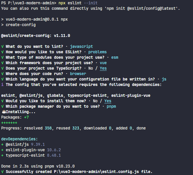 根据提示,会自动安装相关依赖以及生成配置文件: